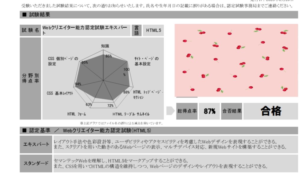 Webクリエイター能力認定試験/HTML5(エキスパート)に一発合格しました!